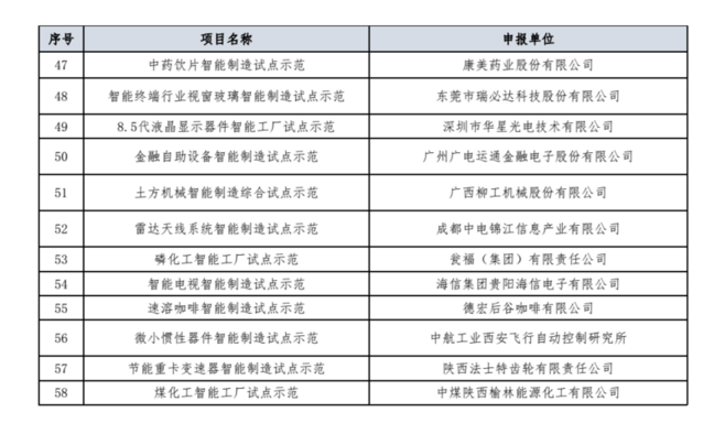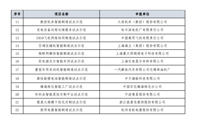 2016年智能制造试点示范项目公示
